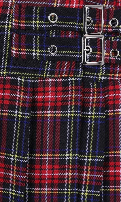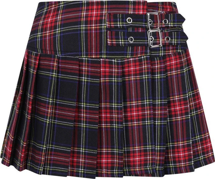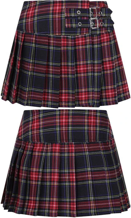 Ideal for anyone going for a nu-goth look. Buckle fastening at the waist and styled to look like a wrap over design, this mini has an iconic punk aesthetic and is comfortable and stylish to wear. The fabric is stretchy and will hold its shape. Make Avril proud with knee-high socks or fishnets under this beauty.
