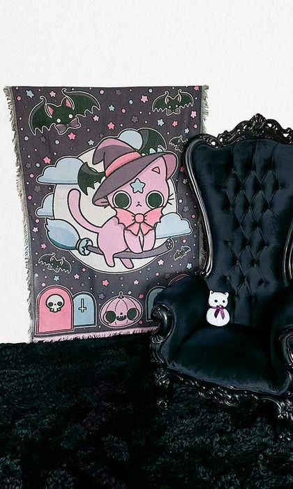 Embrace your inner witch and let your spirit soar in the Nekomancer Tapestry Blanket from Beserk Crypt. With this blanket, you’ll feel like you’re soaring through the night sky on a broomstick, exploring the secrets of the universe and uncovering the mysteries of the occult.