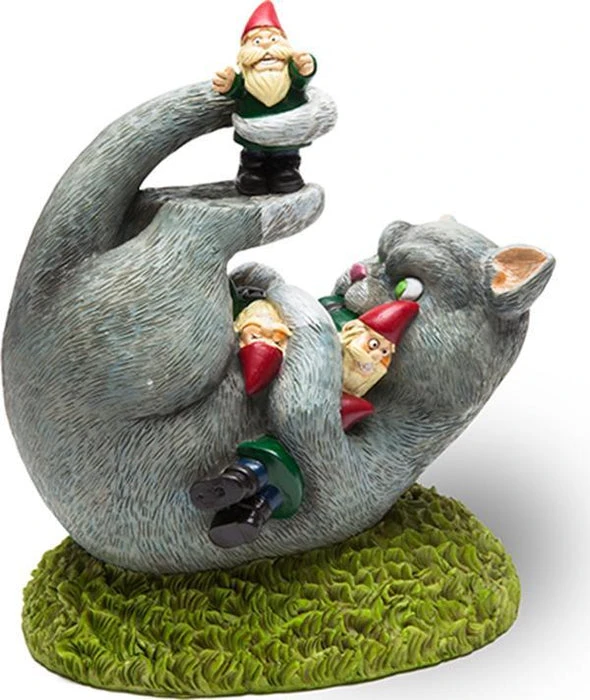 You can take a cat out of a fight, but you can’t take the fight out of the cat! They’re cuddly and cute until you rub them the wrong way and then BAM…your arm all of a sudden looks like a BBQ turkey leg from the county fair. Gnomes are treated no different from their human counterparts—they’re subject to the same “no reason” petting rules cats are famous for. The Cat Garden Gnome Massacre statue captures the moment they snapped on the lil’ guys perfectly, and is a hilarious addition to your backyard or garden.