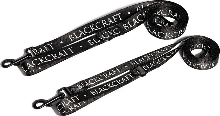 For all your leashing needs, the Blackcraft logo pet leash comes in two sizes for greater tension strength. Features matte black hardware for clipping to collars and metal hardware by the handle to clip on pet baggies. Includes sewn in loop for wrist and hand grip.