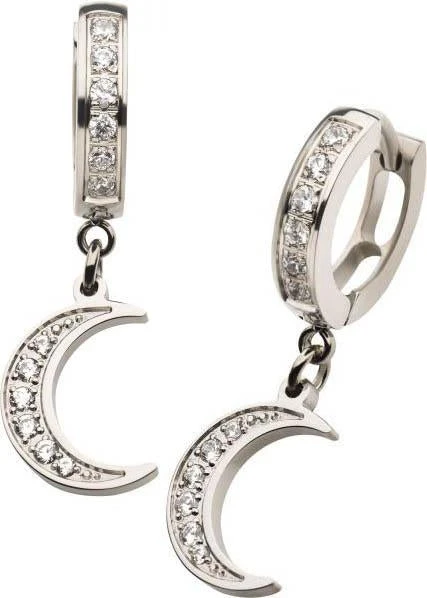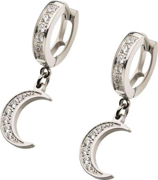 1.5mm Clear CZ Huggie with Clear CZ Crescent Moon Dangle Earrings.