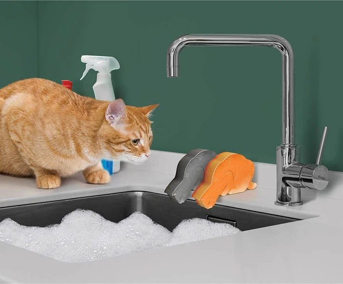 Kitchen Kittens are here to give your dishes a purrrfect shine! These cute cat sponges sit patiently on the side of your sink, ready to pounce at the opportunity to help clean up! Each high-quality sponge is multi-layered with a durable scrubbing pad.Â