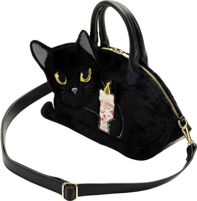 Celebrate the magic of All Hallows’ Eve with the Loungefly Hocus Pocus Binx Holding Candle Crossbody Bag. Taking the shape of this spellbound accessory, Thackery Binx has been transformed into a soft, plush black cat as he curls up next to the Black Flame Candle.