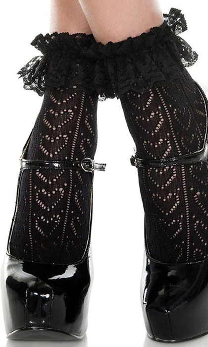 Music Legs Heart Net Design Ankle Socks With Ruffle Trim