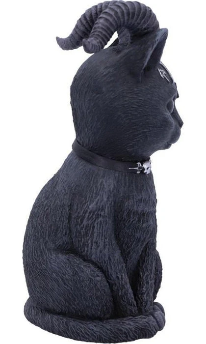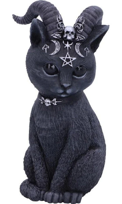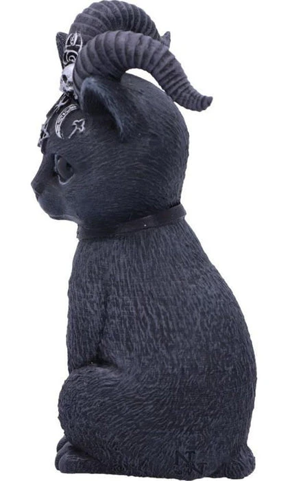 This horned cat is the union of good and evil. The black cat, sits and stares at you adoringly. As you look into its black eyes you notice the darkness that resides. Inside this cat appears to be the spirit of Baphomet, encapsulated by goat horns and satanic symbology. Cast in high-quality resin and carefully hand-painted this figurine is likely to be the cutest occultist you’ve ever seen.Â