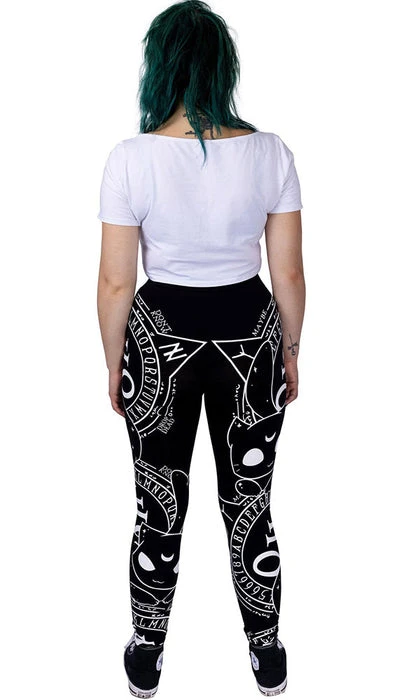Cats are a goth’s best friend! So why not sport this super cozy pair of kitty leggings all winter long!? Covered in white witchy kitty motifs this pair of leggings is purrfect for all your fellow witches and cool cats!Â
