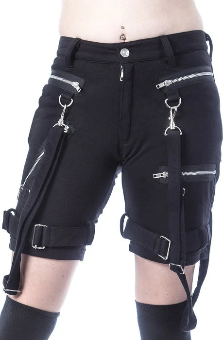 These punk shorts are a perfect staple in any grungy wardrobe! They feature detachable suspenders, statement zips and all the attitude you can handle!Â