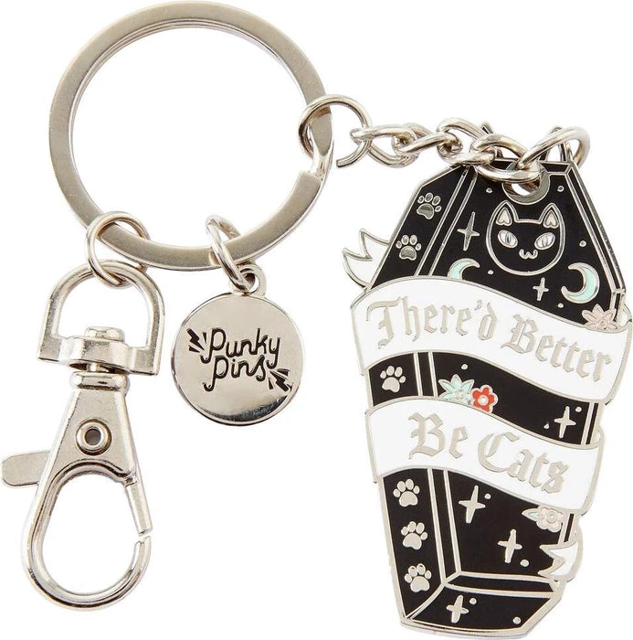 Hard enamel keyring on large split-ring with Punky Pins logo tag and spring snap clasp.