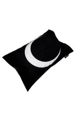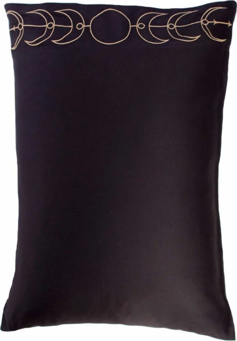 The hems of these black sheets and pillowcases are adorned with a gold tone embroidered design of the moon phase.