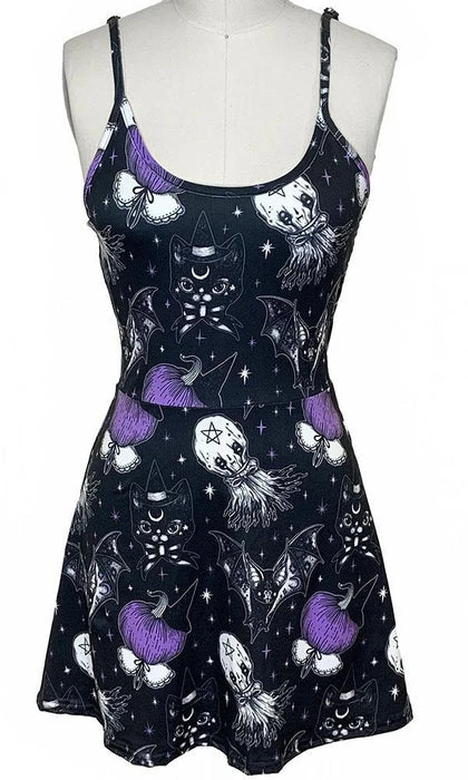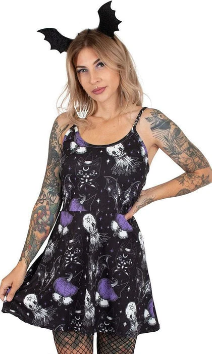 These goth skater dresses have a perfect fit and are extremely easy to wear. They look especially great on all you Skate Bettys, Punk Chics and pretty lil Pin-Up Girls! These flirty fit-n-flare dresses feature a full skirt in stretchy a cotton spandex fabric.