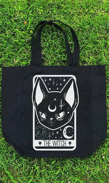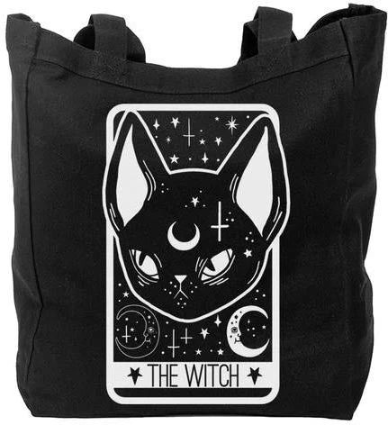 We bet even a witchy cat has a softer side and what better way to show off yours than with this enchanting witchy black cat tarot card tote bag? This cute witchy canvas tote is perfect for carrying around a change of clothes, books, groceries, or whatever else you need in goth style!